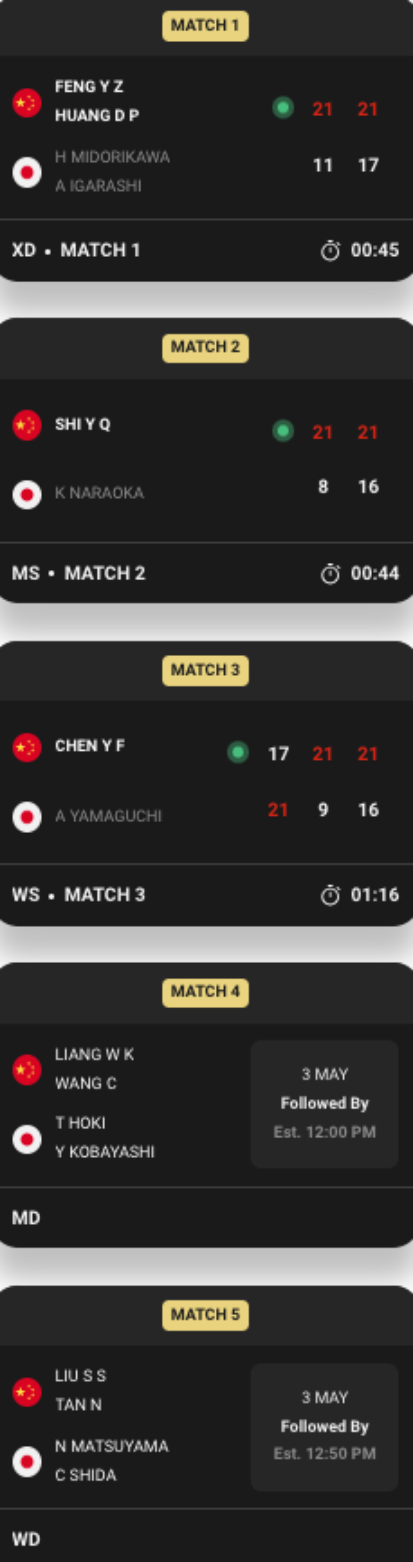 China yang punya kekuatan merata di semua lini, tak memberi harapan kepada Jepang, untuk setidaknya memainkan match ke-4.